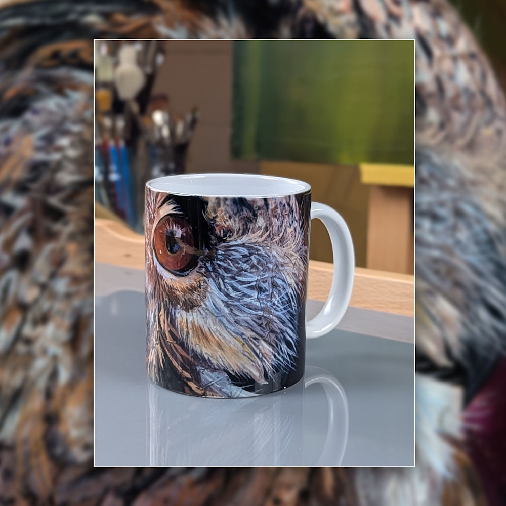 The Eagle Owl Reflections Gift Set pairs a roomy 16 x 16 art tote with an 11 oz ceramic mug, both featuring my original Eagle Owl and White-Tailed Kite artwork. Strong, refined, and ready to give.