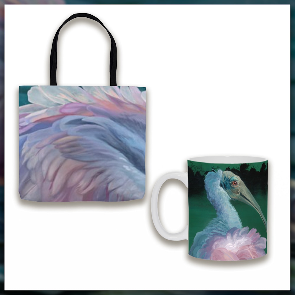 The Spoonbill Serenity Gift Set pairs a roomy 16 x 16 art tote with an 11 oz ceramic mug, both featuring my original Roseate Spoonbill artwork. Gentle, uplifting, and ready to give.