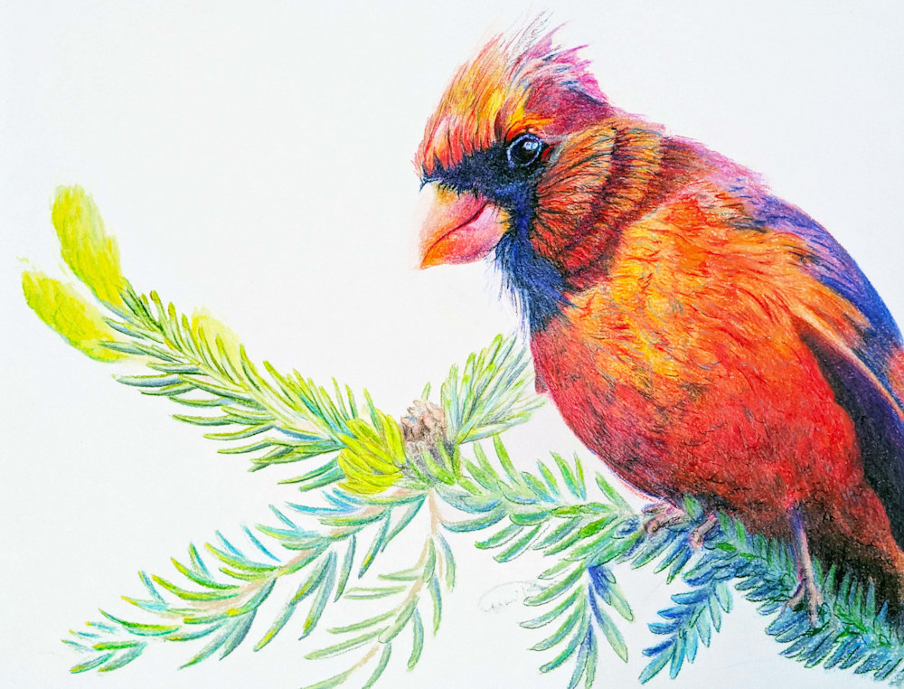 Discover the charm of nature with Branch Manager, a 9x12-inch original color pencil artwork by Allison Richter. This vibrant piece features a striking cardinal perched on an evergreen branch, capturing the beauty of the season with intricate detail and rich color. Perfect for bird lovers and nature enthusiasts, this unique artwork is now available for purchase. Bring the brilliance of wildlife to your collection today!