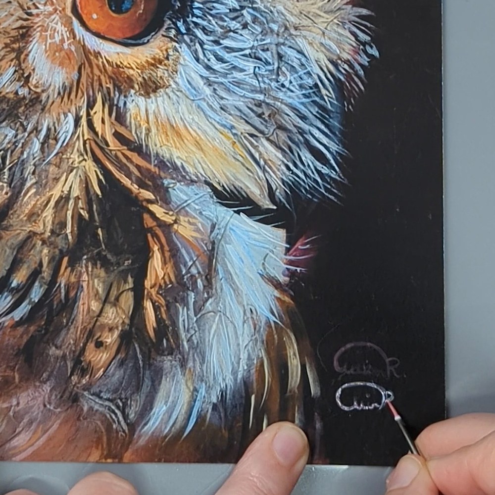 Overall, this owl fine art print is a breathtaking work of art that highlights Allison Richter's talent and creativity as an artist. Its combination of technical skill, attention to detail, and expressive composition make it a truly exceptional piece that is sure to captivate anyone who beholds it.