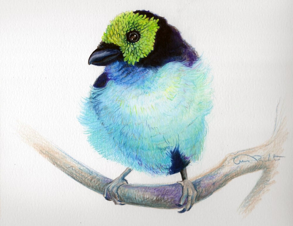 Paradise Tanager Color Pencil Artwork - "Ticket to Paradise"
